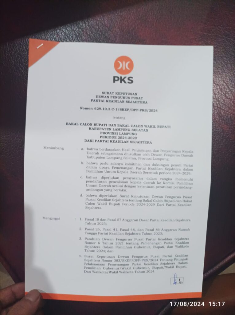 Direkom PKS, Nanang – Antoni Bakal Duet di Pilkada Lampung Selatan